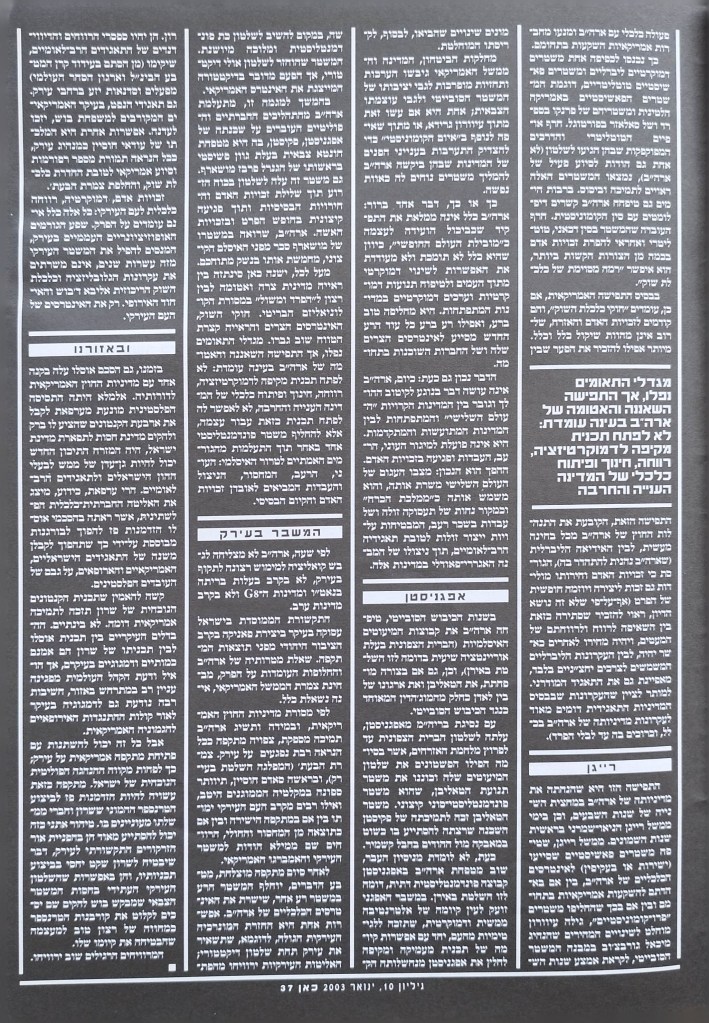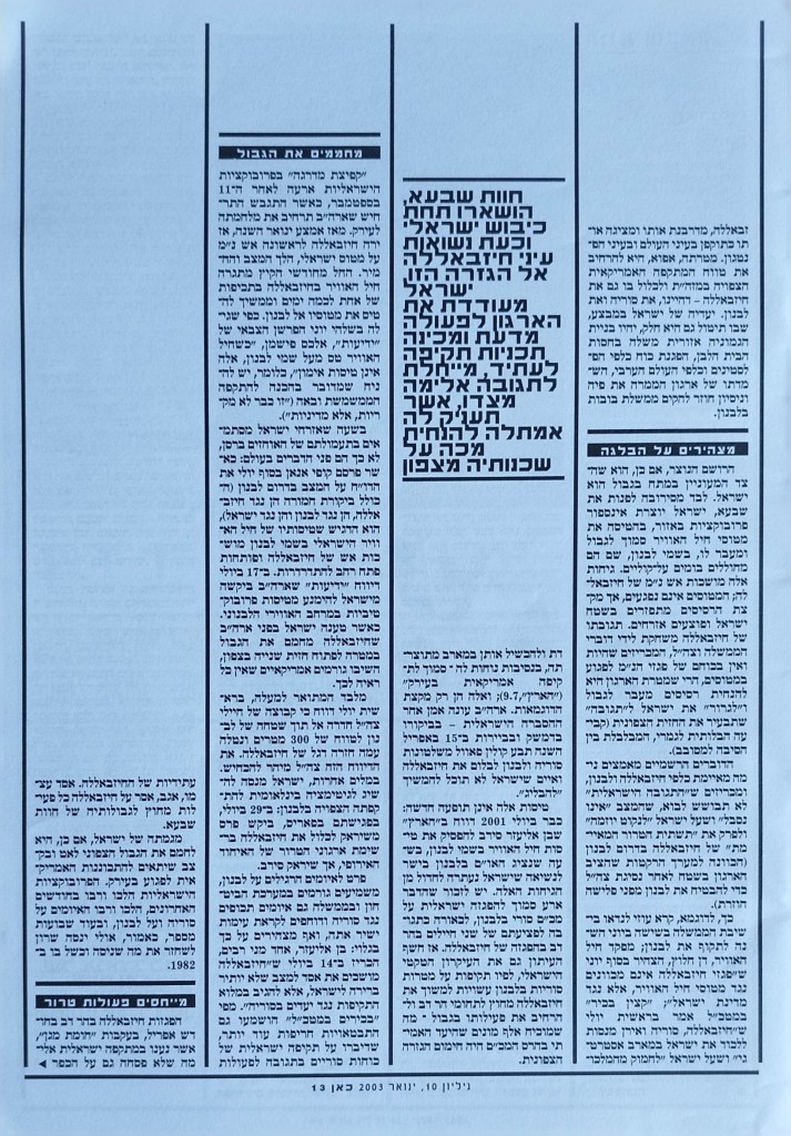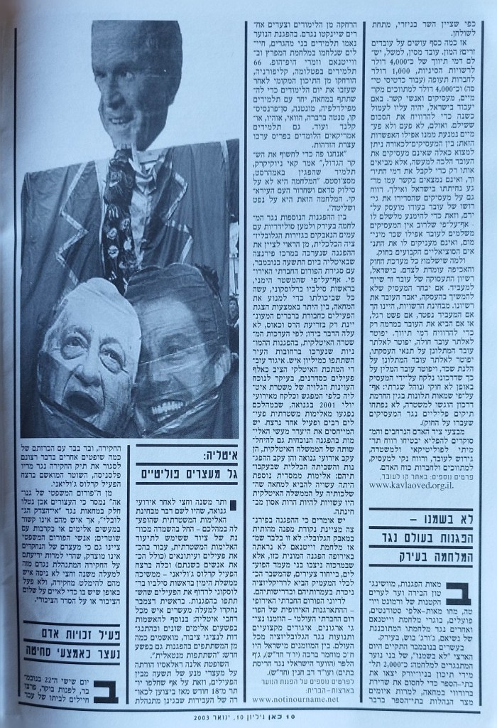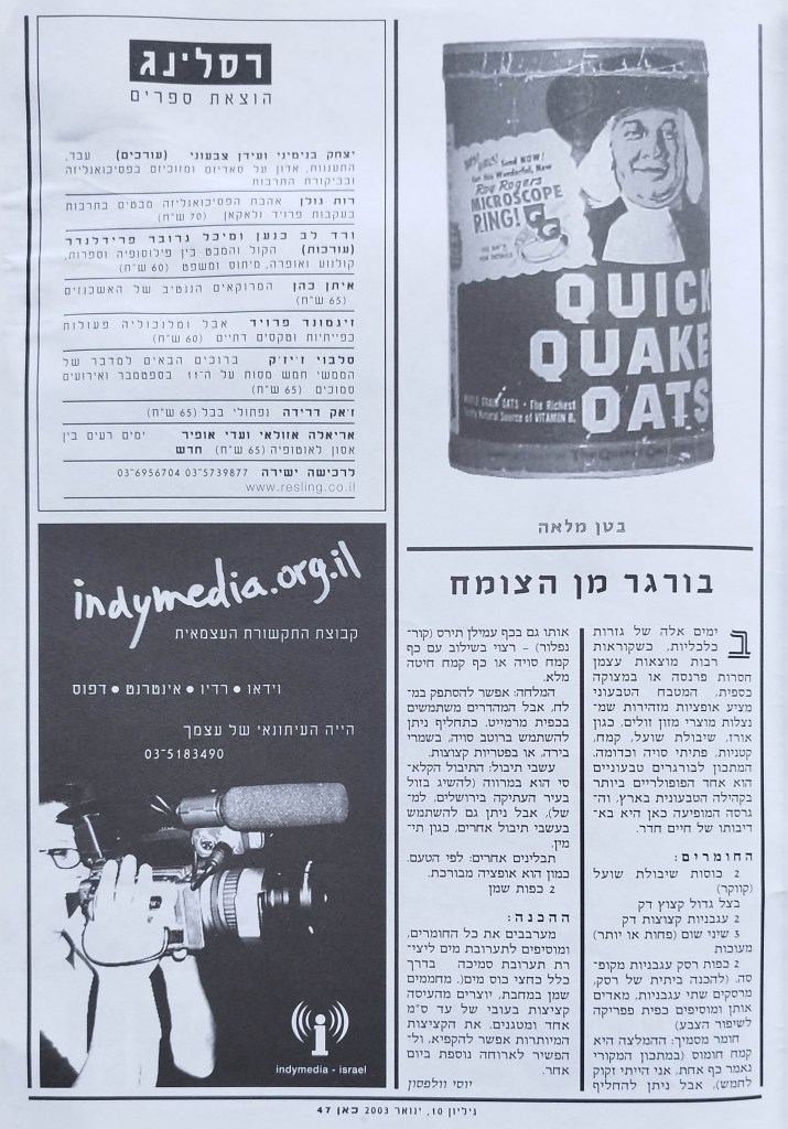 המגזין של קבוצת התקשורת העצמאית | חברי המערכת: רונן אידלמן, אורי ביתן, רומן וטר, יולי חרומצ'נקו, ספי סמואלוב, ענת רוזיליו, אסף שור | שכתוב: יולי חרומצ'נקו, אסף שור | עריכה לשונית: רומןם וטר | תודות: סלוא עלינאת, גיא גרימלנד, עלמה אלורו | מעצב: אמיר חסון | שער אחורי: רונן אידלמן | גליון מס' 10 | ינואר 2003