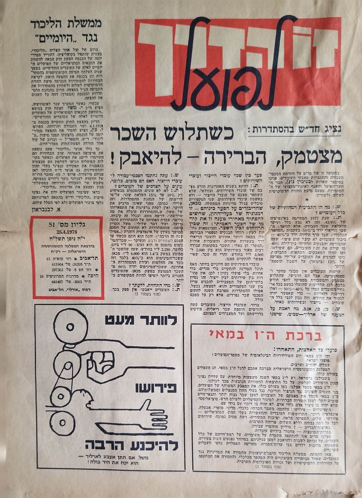 זו הדרך | פועלי כל הארצות התאחדו! פורסם בתאריך מאי 1, 2024 מאת erantorbiner המו"ל והעורך: מאיר וילנר | 25.4.1978 שתף לחיצה לשיתוף ב-X (נפתח בחלון חדש) X לחיצה לשיתוף בפייסבוק (נפתח בחלון חדש) פייסבוק אהבתי טוען... קשור