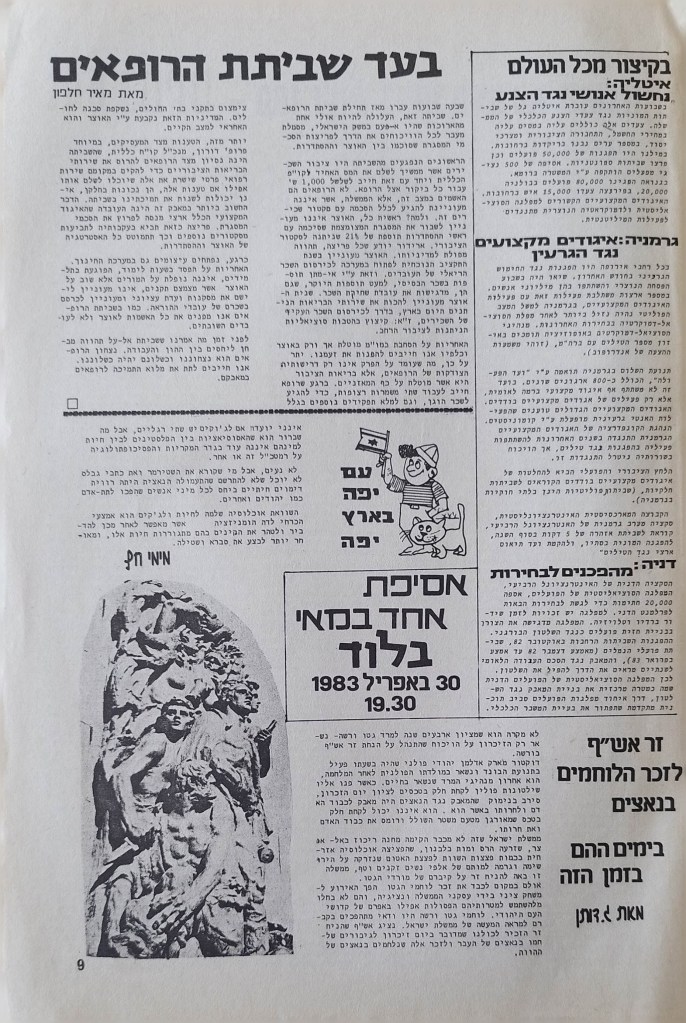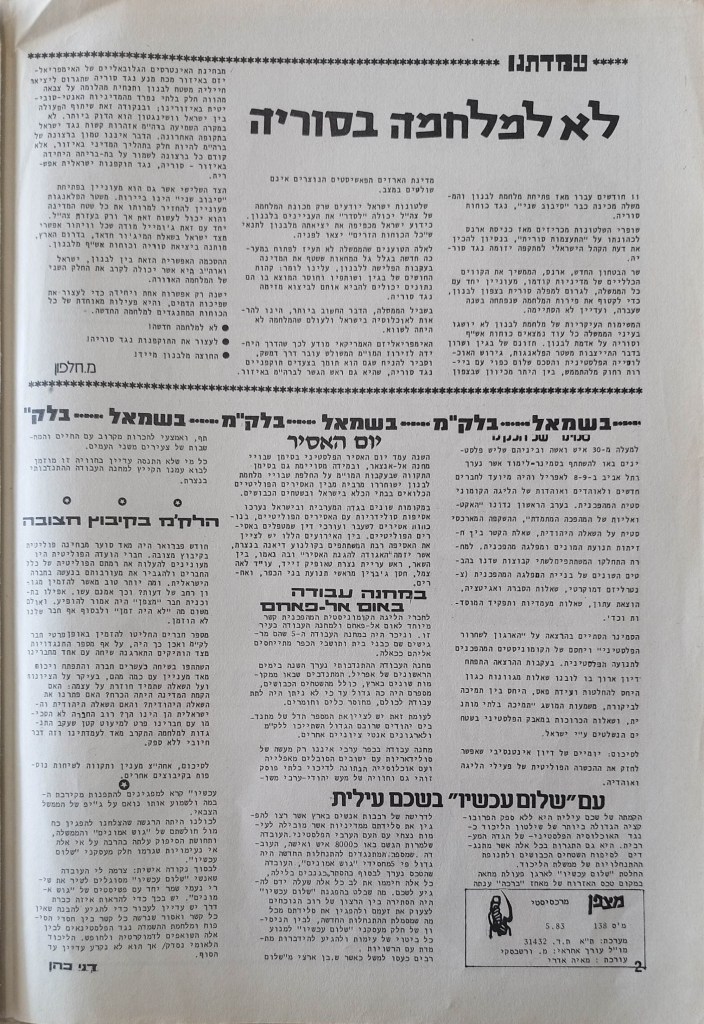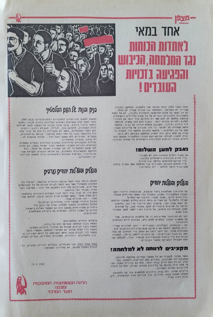בטאון הליגה הקומוניסטית המהפכנית (האינטרנציונל הרביעי) | מו"ל ועורך אחראי: מ. ורשבסקי | עורכת: מאיה אדרי | גליון 138 | מאי 1983