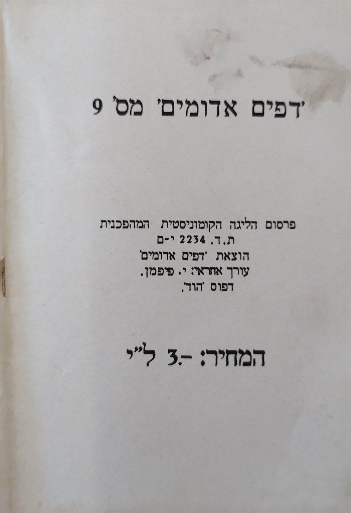 המהפכה הערבית פורסם בתאריך יוני 2, 2024 מאת erantorbiner דפים אדומים מספר 9 | הליגה הקומוניסטית המהפכנית | ת.ד 2234 י-ם | עורך אחראי: יעקב פיפמן | דפוס הוד | 1973 שתף לחיצה לשיתוף ב-X (נפתח בחלון חדש) X לחיצה לשיתוף בפייסבוק (נפתח בחלון חדש) פייסבוק אהבתי טוען... קשור