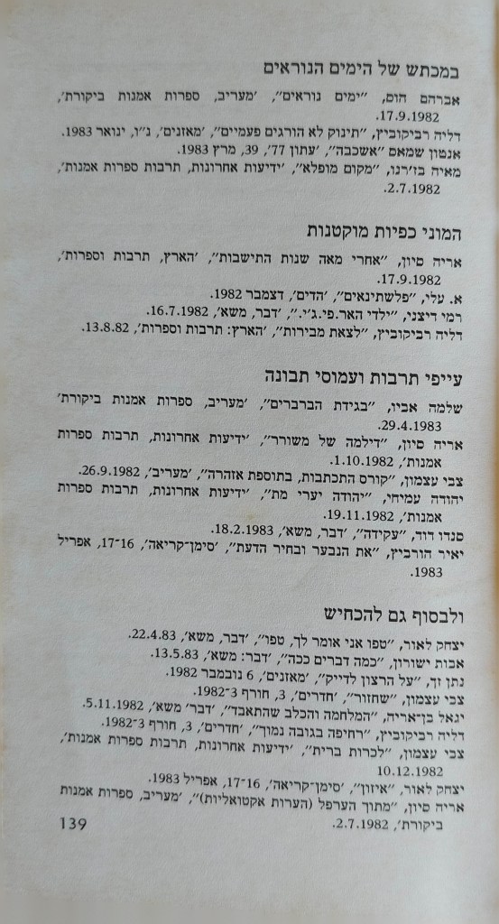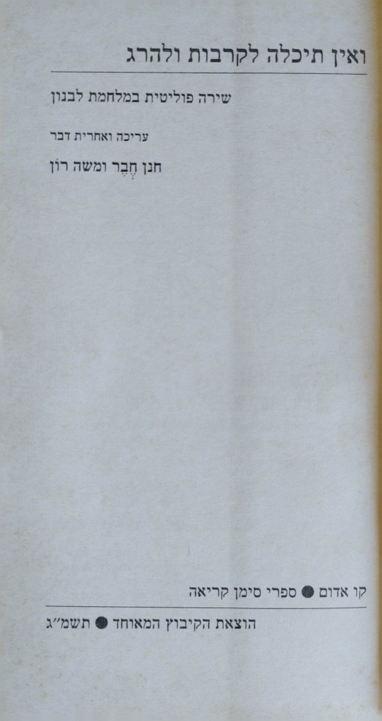 עריכה ואחרית דבר: חנן חבר ומשה רון | קו אדום | ספרי סימן קריאה | הוצאת הקיבוץ המאוחד | תשמ"ג | 1983
