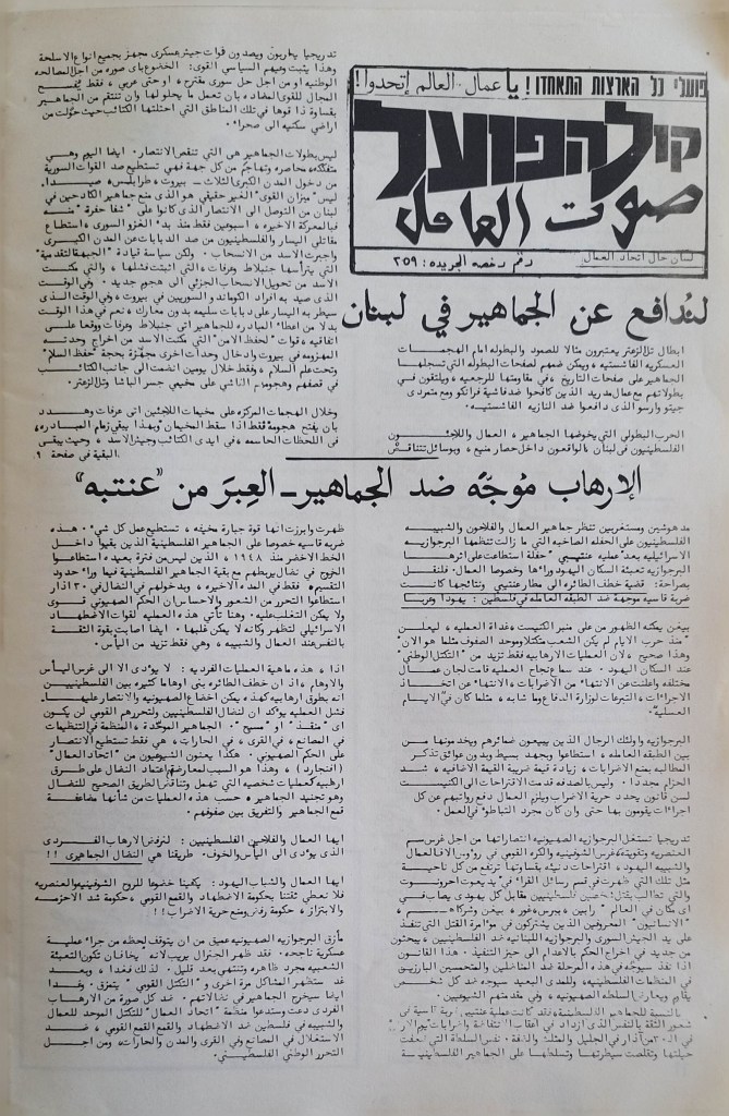 קול הפועל |صوت العامل פורסם בתאריך יוני 19, 2024 מאת erantorbiner פועלי כל הארצות התאחדו בטאון 'ברית הפועלים' (אבנגרד) | עורך: צבי ציפל | מו"ל: מנחם כרמי | גליון 32 | יולי 1976 שתף לחיצה לשיתוף ב-X (נפתח בחלון חדש) X לחיצה לשיתוף בפייסבוק (נפתח בחלון חדש) פייסבוק אהבתי טוען... קשור