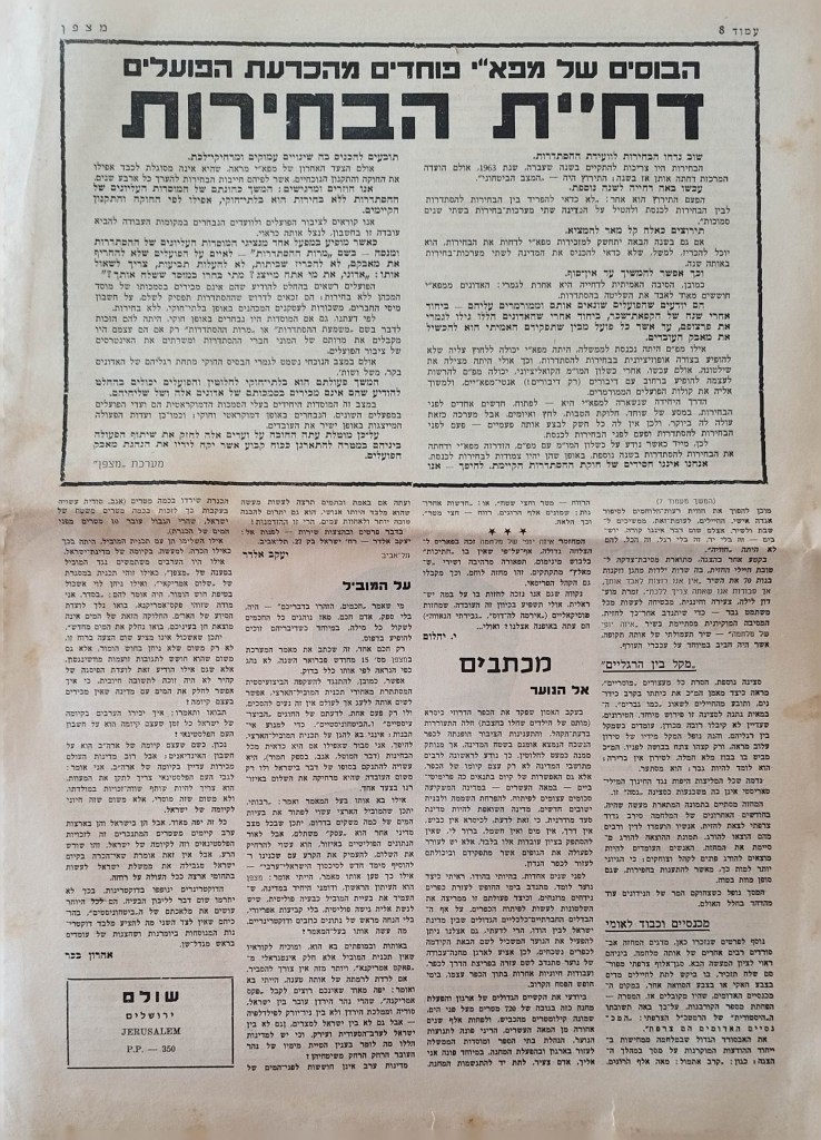 בטאון הארגון הסוציאליסטי הישראלי | העורך: עודד פילבסקי | המו"ל: ד"ר משה מחובר | ירחון פועלים | דפוס מל"ן, רח' הלל הזקן 6 תל אביב | גליון מספר 16 | מרץ 1964