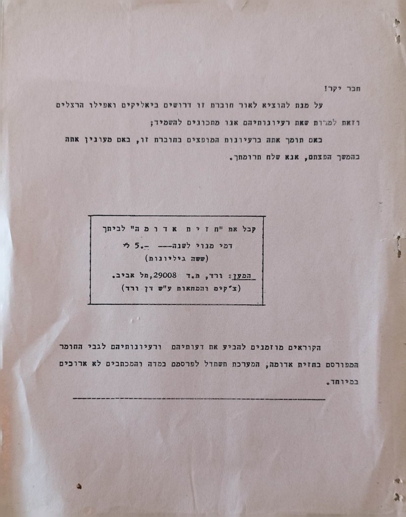 חזית אדומה |הועד להקמת מפלגת פועלים מהפכנית פורסם בתאריך יוני 19, 2024 מאת erantorbiner שנה 1, מס. 1 | דן ורד | תל אביב | אוקטובר 1971 שתף לחיצה לשיתוף ב-X (נפתח בחלון חדש) X לחיצה לשיתוף בפייסבוק (נפתח בחלון חדש) פייסבוק אהבתי טוען... קשור