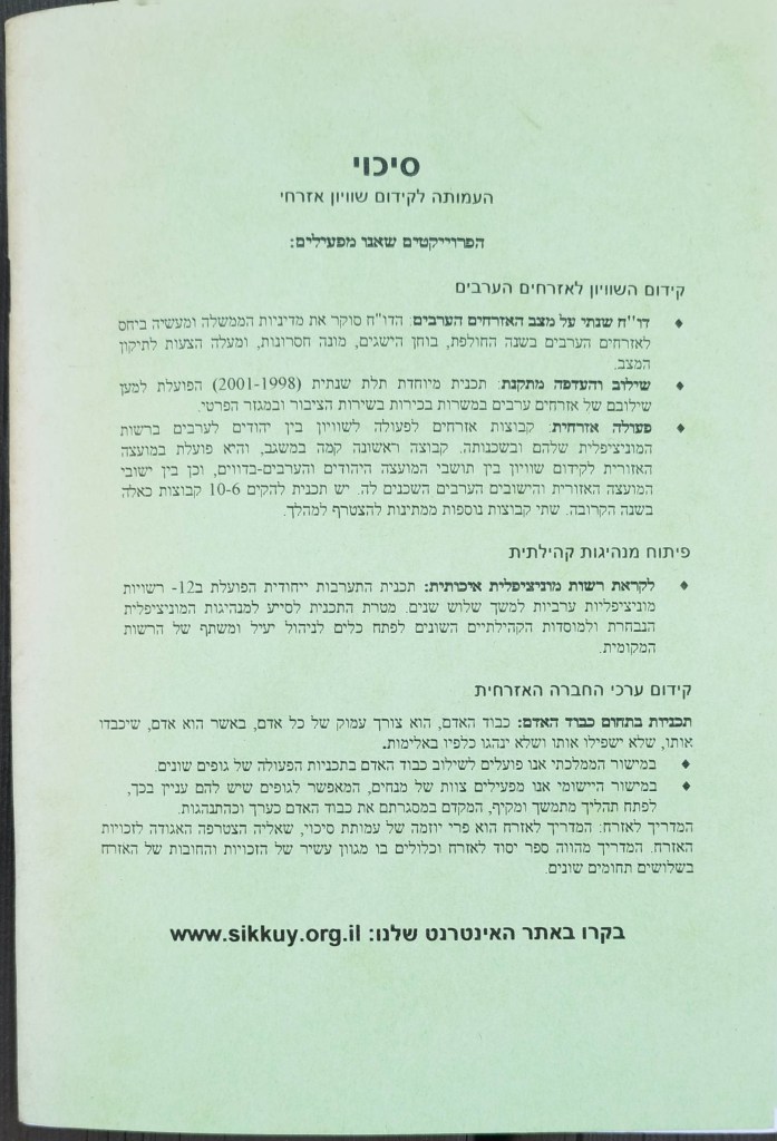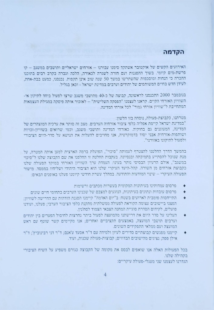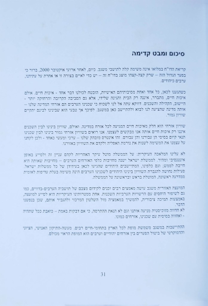 שוויון ושילוב האזרחים הערבים 2000-2001