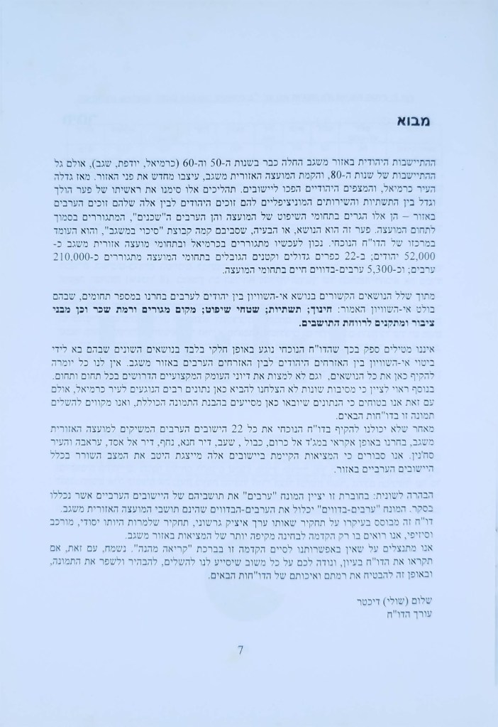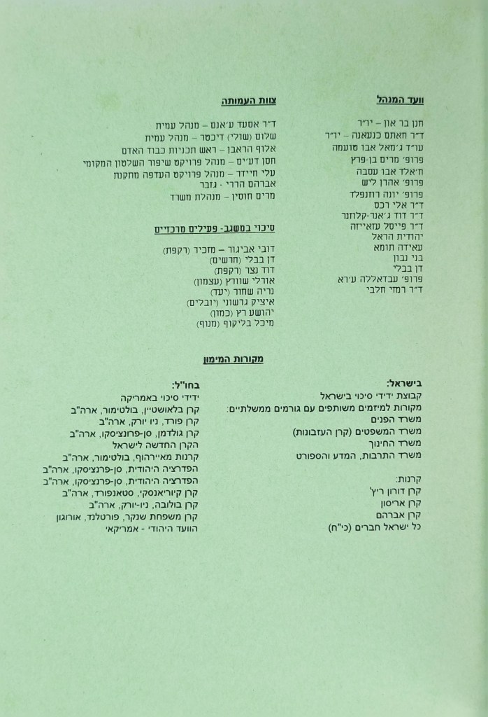 עורך: שלום (שולי) דיכטר | תחקיר וכתיבה: איציק גרשוני | הפקה והבאה לדפוס: מיכל בליקוף | עריכה לשונית : יצהר ורדי | תרגום לערבית: חסן תרגומים | תרגום לאנגלית דבורה רייך | ספטמבר 2001