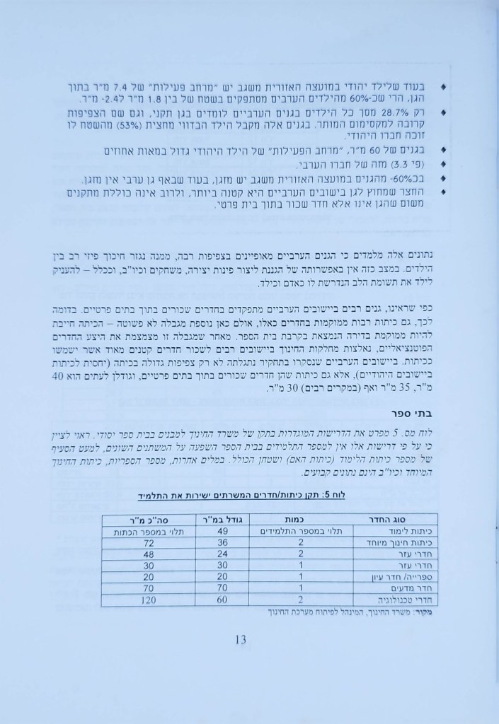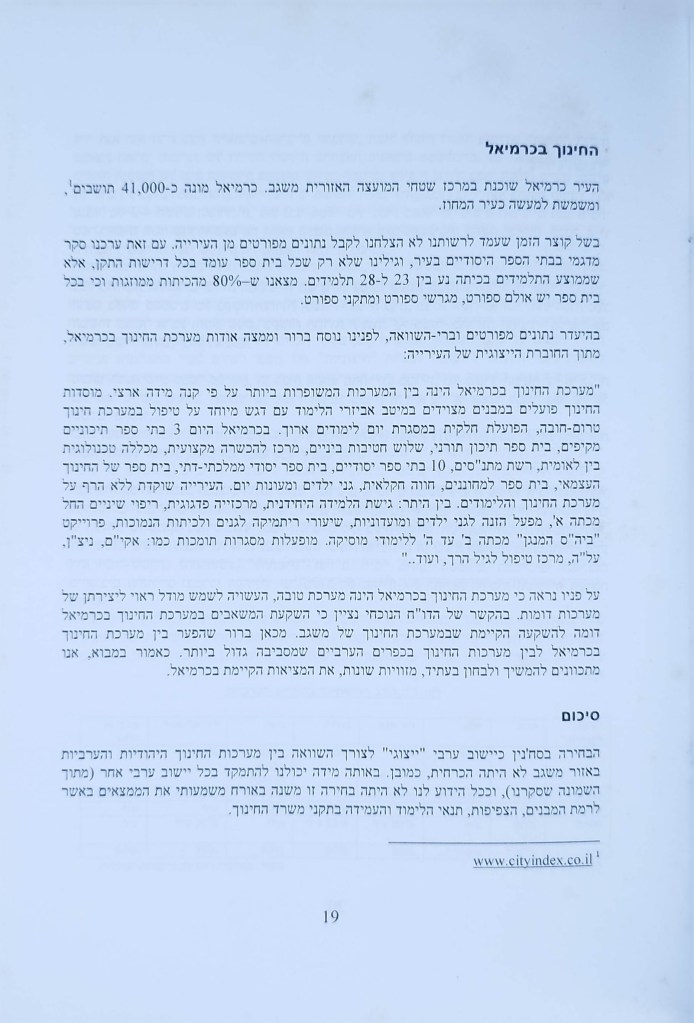 חינוך | תשתיות | שטחי שיפוט | מקום מגורים ורמת שכר