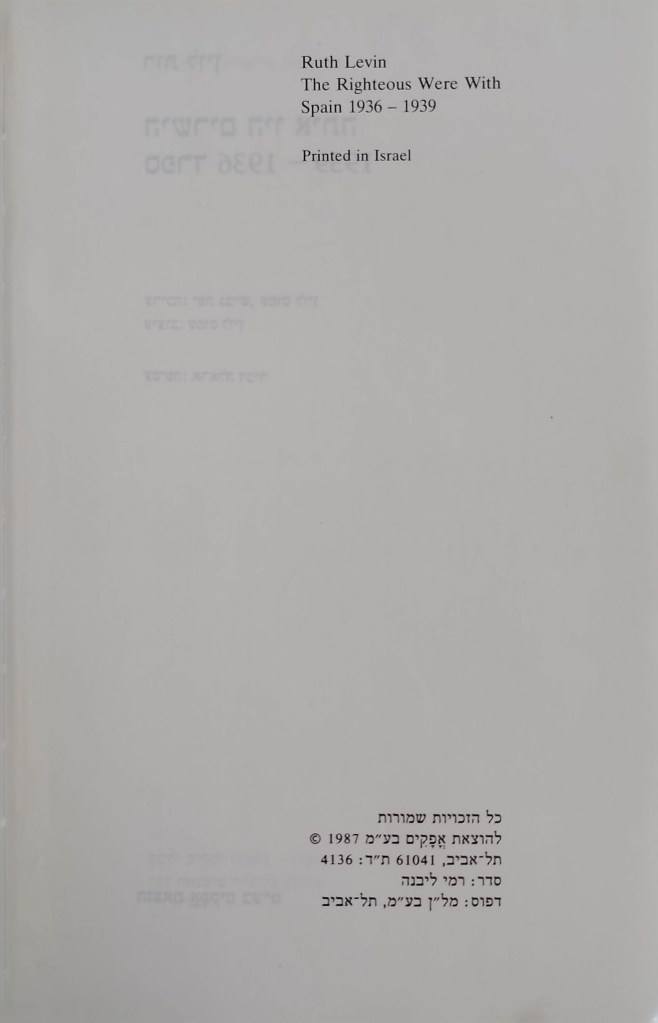 Ruth Levin | The Righteous Were With Spain 1936-1939 |Printed in Israel | 1987