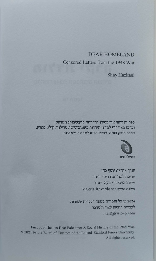 DEAR HOMELAND | Censored Letters from the 1948 war | Shay Hazkani