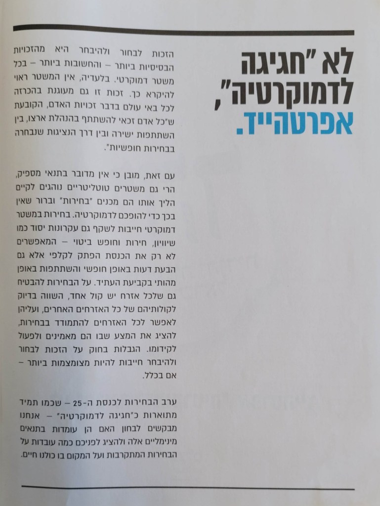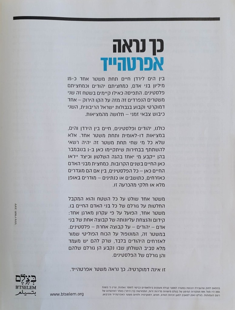 כך נראה אפרטהייד פורסם בתאריך דצמבר 31, 2024 מאת erantorbiner בצלם | 2022 לא "חגיגה לדמוקרטיה", אפרטהייד. שתף לחיצה לשיתוף ב-X (נפתח בחלון חדש) X לחיצה לשיתוף בפייסבוק (נפתח בחלון חדש) פייסבוק אהבתי טוען... קשור