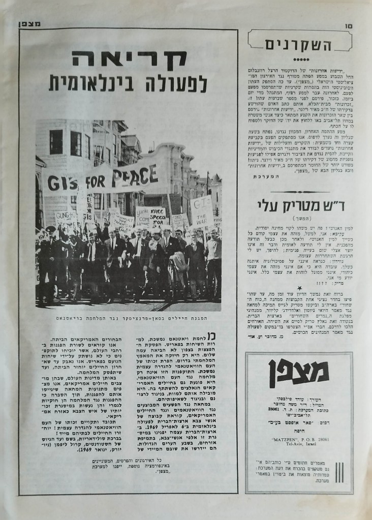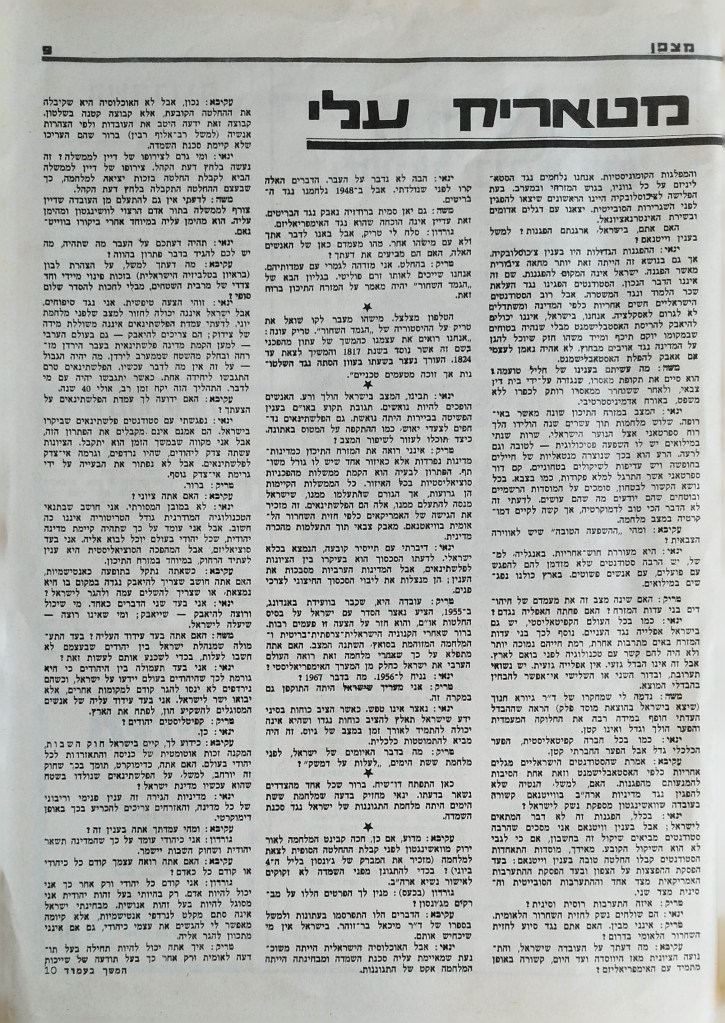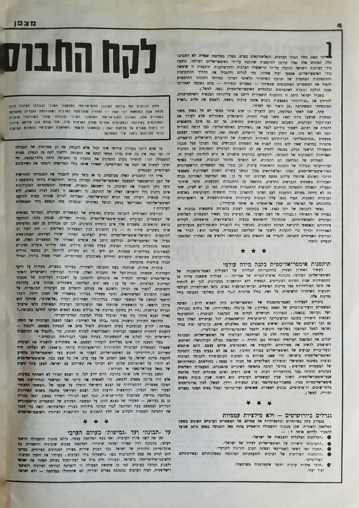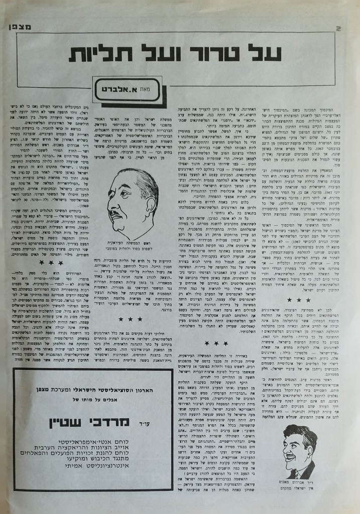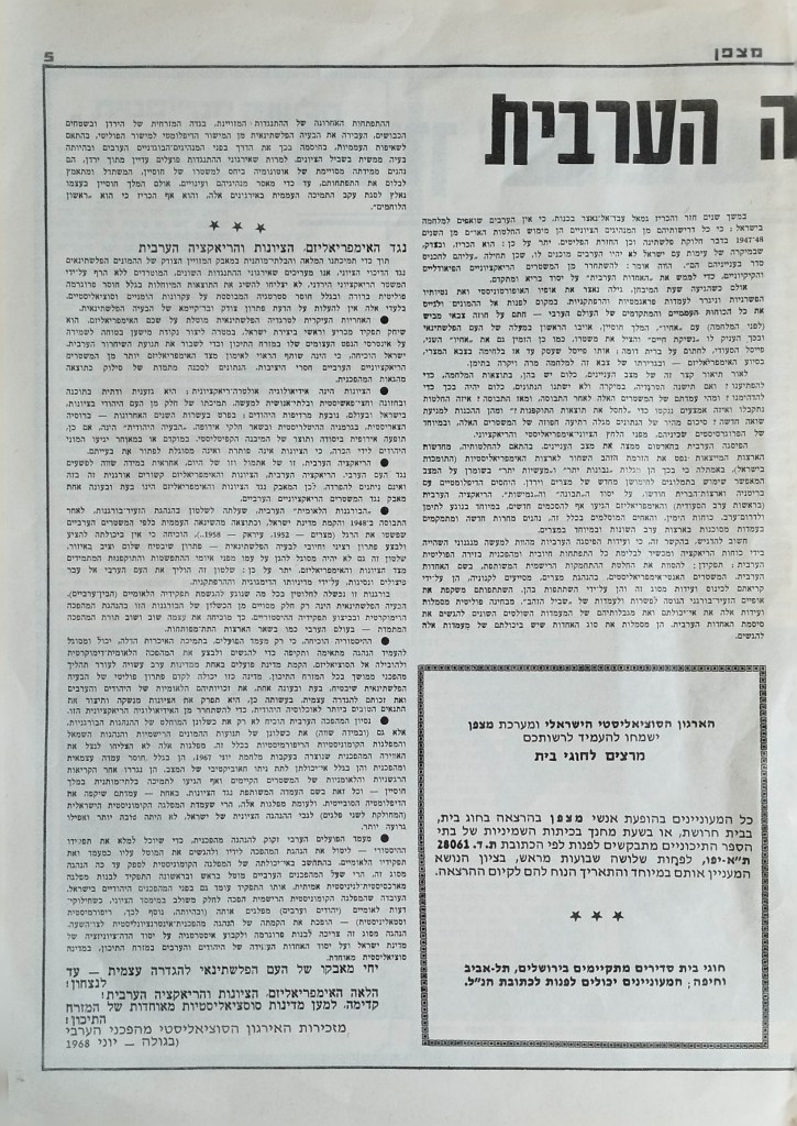 בטאון הארגון הסוציאליסטי הישראלי | עורך: עודד פילבסקי | מו"ל: ד"ר משה מחובר | כתובת המערכת: ת.ד 28061 תל אביב-יפו | דפוס: פאר אופסט בע"מ, חיפה | גליון 48 | מרץ 1969