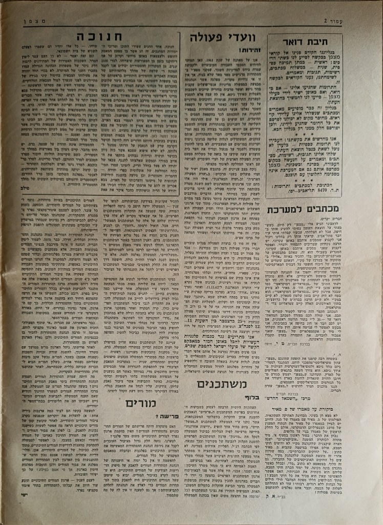 העורך: עודד פילבסקי | המוציא לאור: ד"ר משמשה מחובר | הוצאה חד פעמית | דפוס מל"ן | רחוב הלל הזקן 6, תל אביב | דצמבר 1962 | כסלו תשכ"ג