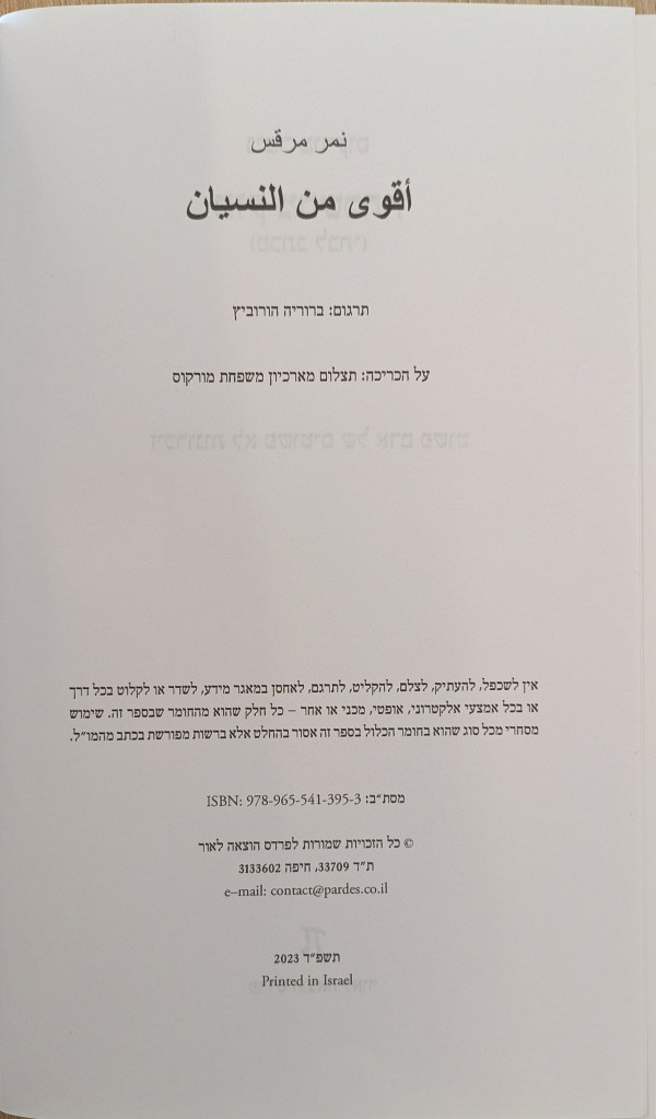 תרגום: ברוריה הורוביץ | על הכריכה: תצלום מארכיון משפחת מורקוס | כל הזכויות שמורות לפרדס הוצאה לאור | ת"ד 33709, חיפה | תשפ"ד 2023