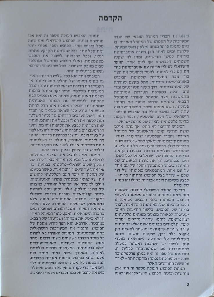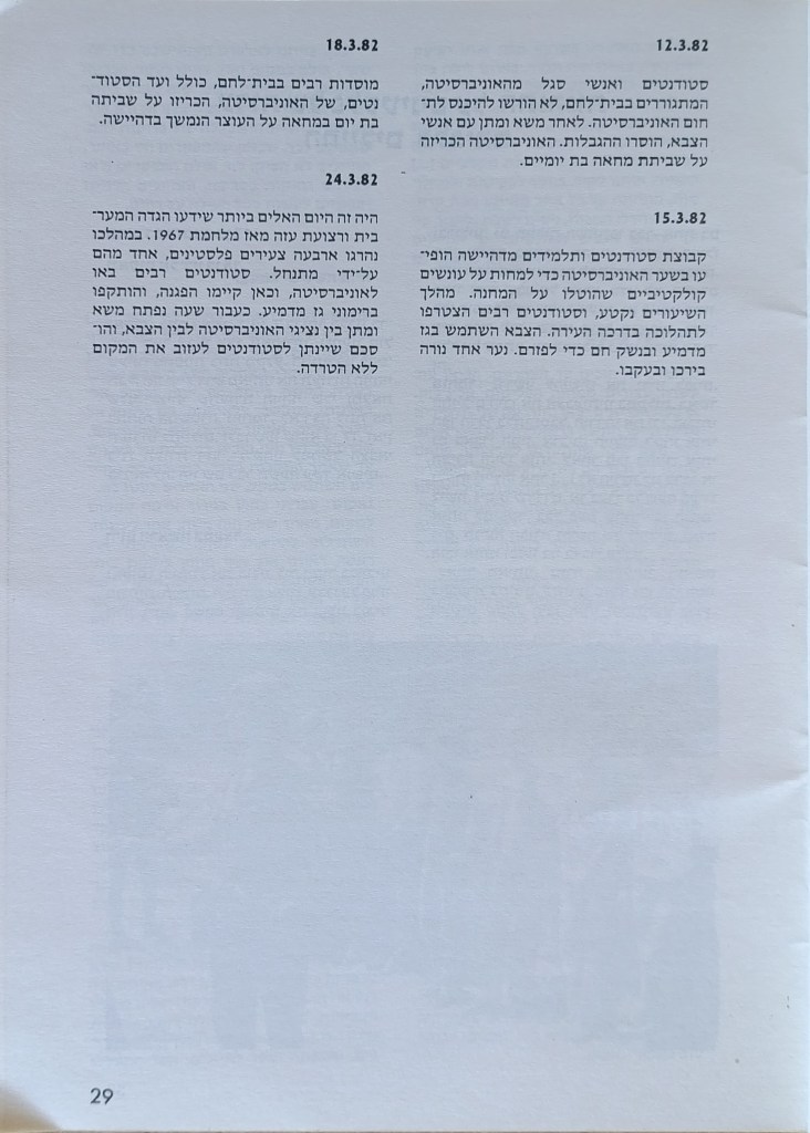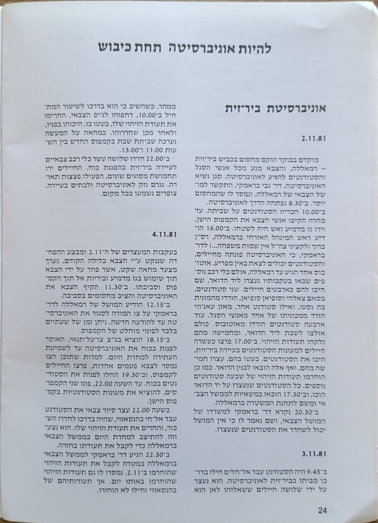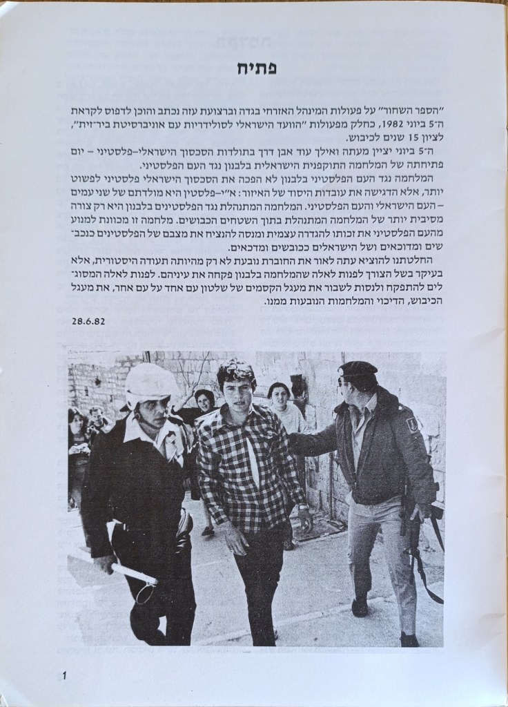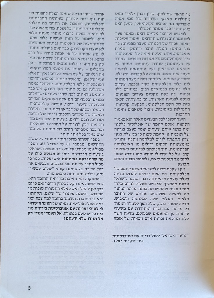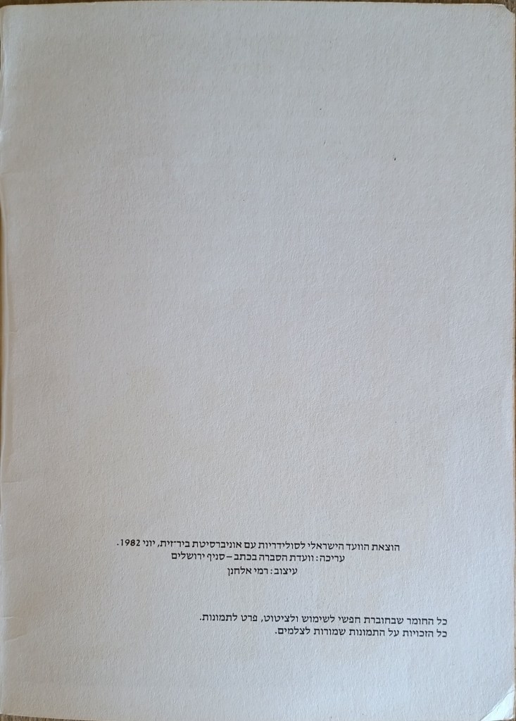 הוצאת הוועד הישראלי לסולידריות עם אוניברסיטת ביר-זית, יוני 1982