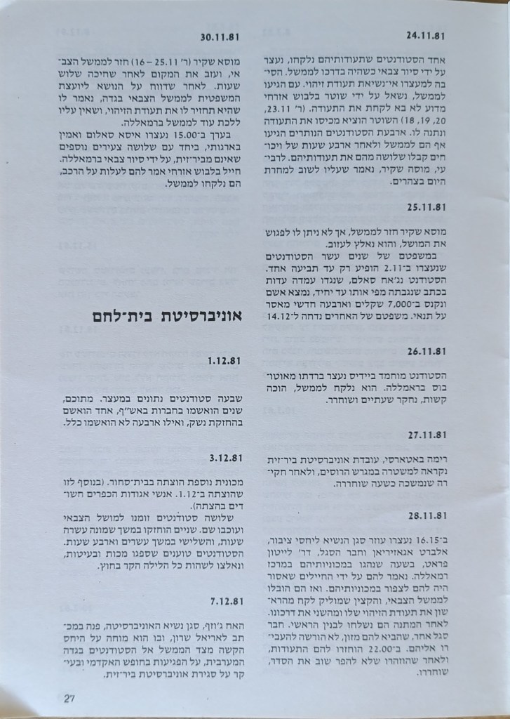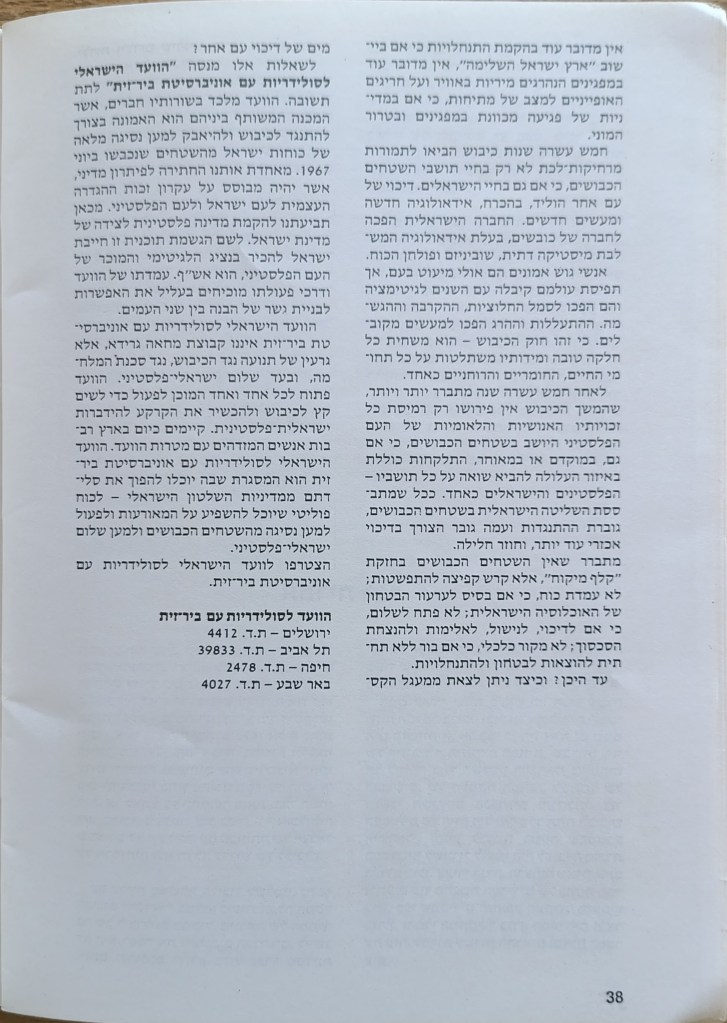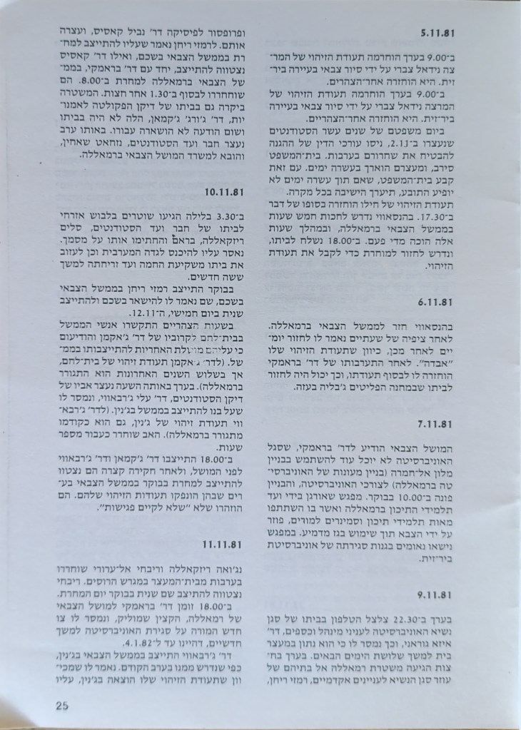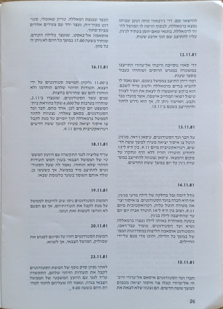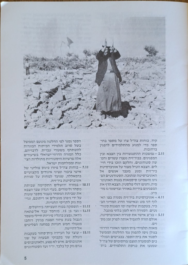 הוצאת הוועד הישראלי לסולידריות עם אוניברסיטת ביר-זית, יוני 1982