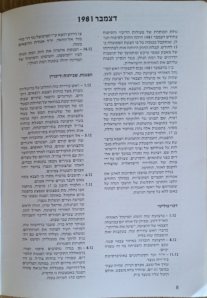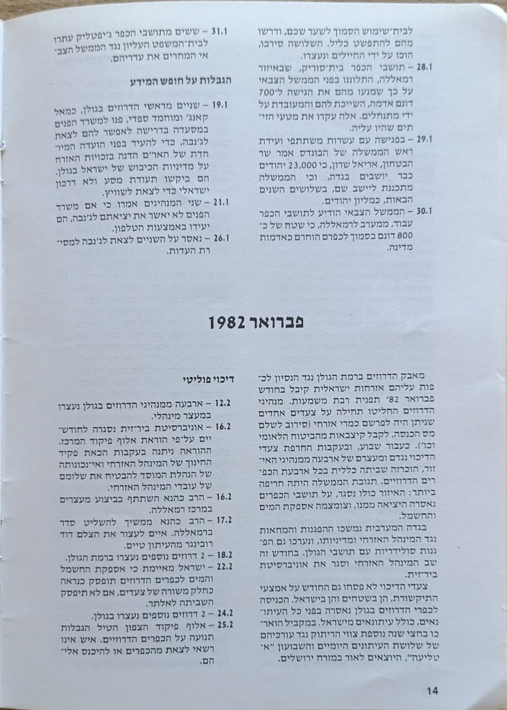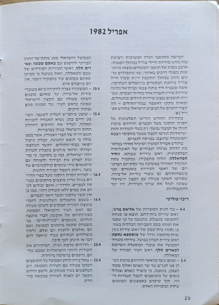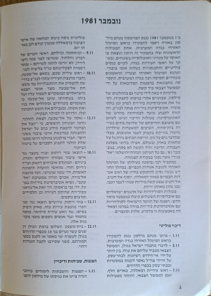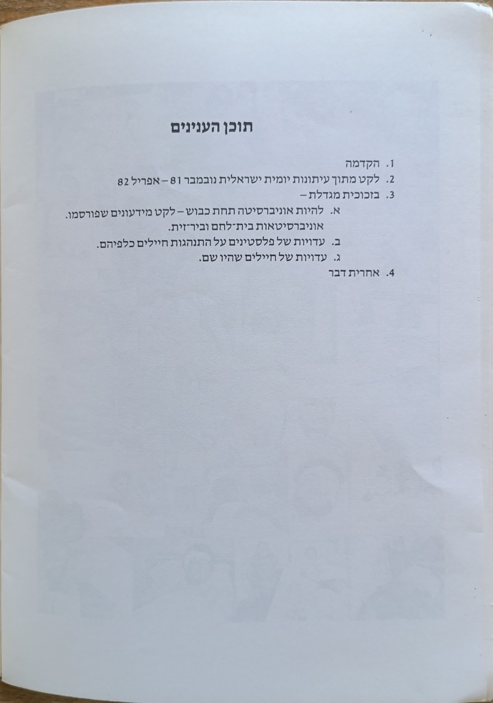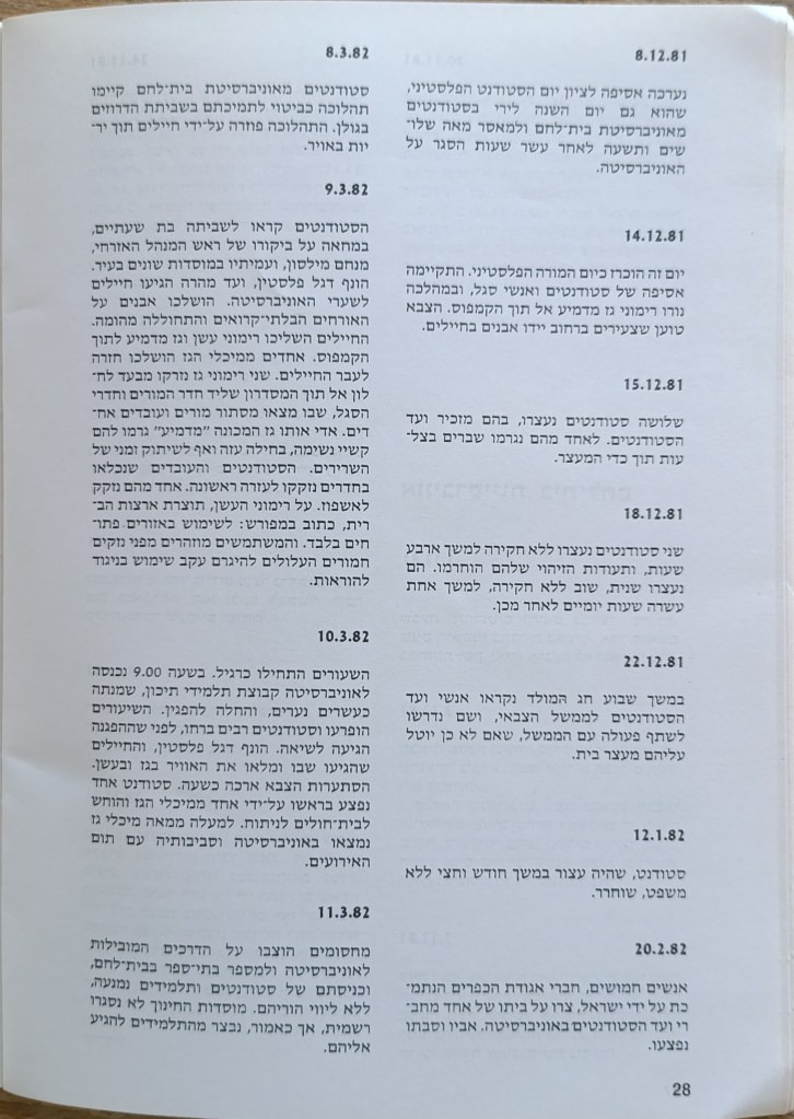 הוצאת הוועד הישראלי לסולידריות עם אוניברסיטת ביר-זית, יוני 1982