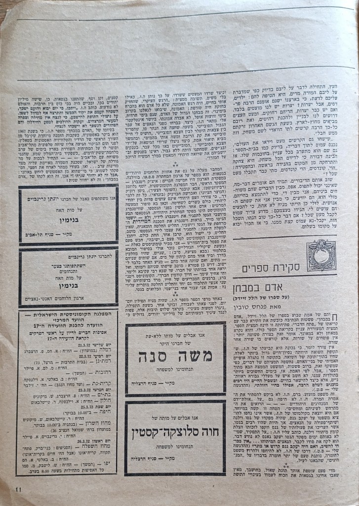 המערכת המרכזת: ברל באלטי (ראש המערכת), יעקב זילבר, יאיר צבן | האחראי: צבי ברייטשטיין | המו"ל: קול העם | גליון מס' 12 (8080) | 22.3.1972