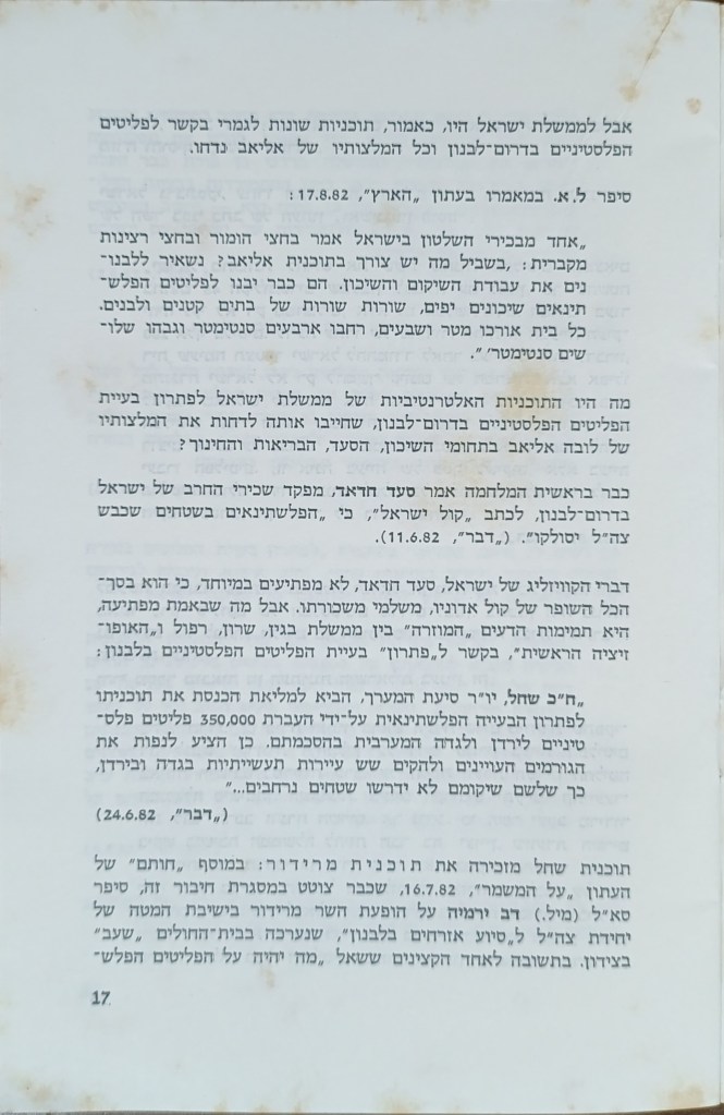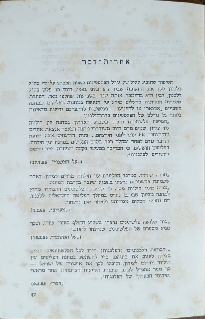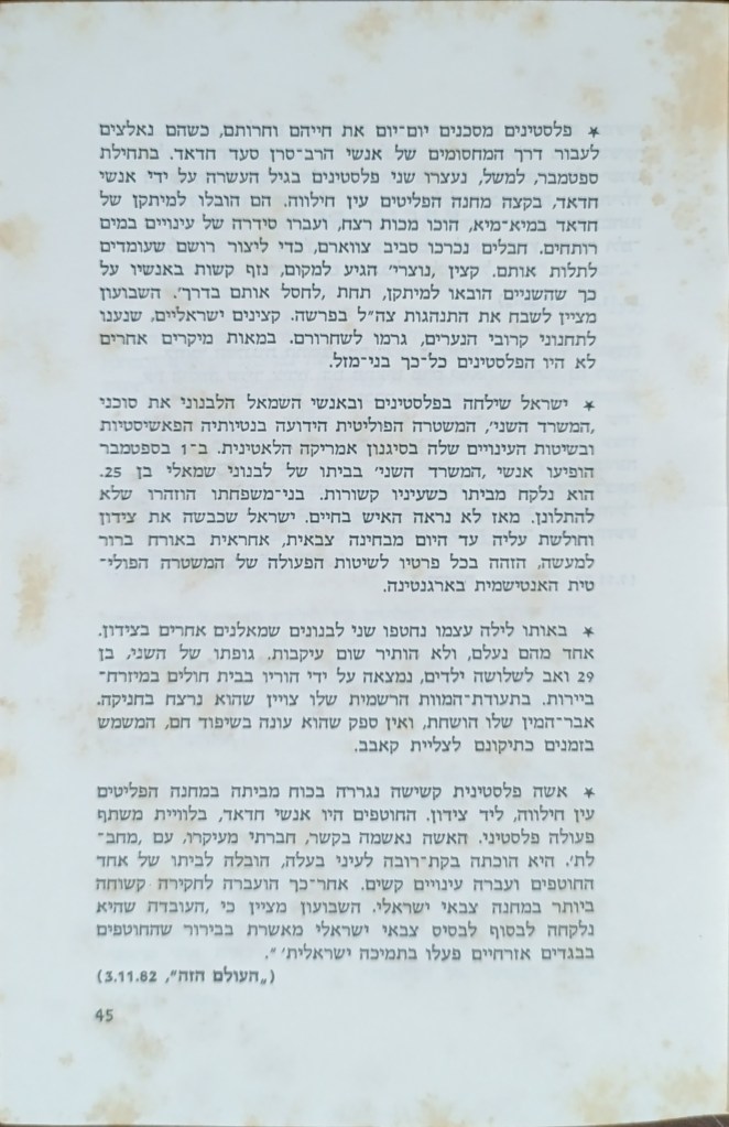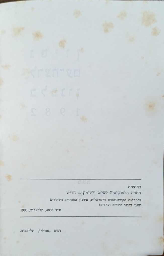 בהוצאת החזית הדמוקרטית לשלום ולשוויון – חד"ש (המפלגה הקומוניסטית הישראלית, ארגון הפנתרים השחורים וחוגי ציבור יהודים וערבים) | דפוס אורלי | תל אביב | 1983