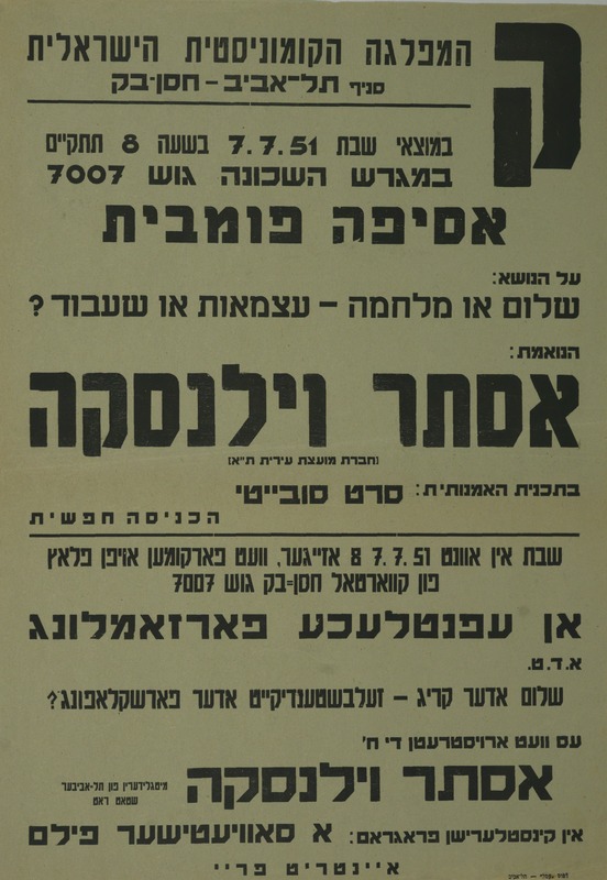 19.7.19461.7.195025.5.19517.7.195122.7.1951תשע מאות מליון השיגו חירות הודות לקומוניסטים. בחירות לכנסת 1955ירושלים. 19.2.196310.6.197119735.5.1972197117.1.19734.3.197321.3.19733.8.1973197324.4.19751976נופיע בתוך גליון מצפן מס' 77, מאי 1976אפריל 197827.1.198117.4.198620.2.198821.3.200119822009דצמבר 19821.5.19735.6.198210.12.19896.6.1984ספטמבר 198218.4.198419.12.198820032024201020122022מרץ 202420242024תאוות הנקם שביעבעה בציבור הישראלי לאחר אירועי השביעי באוקטובר הובילה לאלימות חסרת תקדים כלפי אזרחי הרצועה, פלסטינים מחוצה לה ובלתי מעורבים נוספים. הציבור הישראלי-יהודי מפגין עיוורון סלקטיבי כלפי זוועות אלו וממשיך לתמוך במערכת ששולחת אותו ואת בניו ובנותיו להילחם ולמות בעד קידוש מעגל הדמים. עין תחת עין וכולנו, מעורבים ובלתי מעורבים, אשמים ובלתי אשמים, הורים וילדים, נישאר עיוורים.20232024202420242024