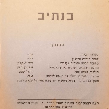 ליגה להתקרבות ושיתוף יהודי ערבי | סניף תל אביב | ספטמבר 1945 | פנימי