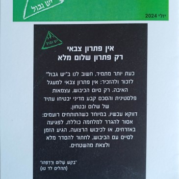 הוצאת 'יש גבול' | אוגוסט 2019