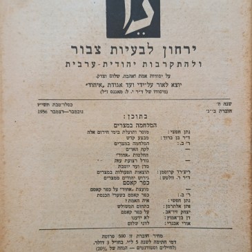 ירחון לבעיות צבור ולהתקרבות יהודית ערבית על יסודות אמת ואהבה, שלום וצדק יוצא לאור על ידי ועד אגודת 'איחוד' מיסודו של ד"ר י.ל מאגנס ז"ל | שנה ח' | חוברת ב'-ג' | כסלו טבת תשי"ז | נובמבר-דצמבר 1956