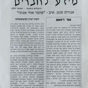 אגודת סנט. איב – "שומר אחי אנוכי" | מו"ל: לינדה ברייר, עו"ד, מנהלת משפטית | ירושלים | נובמבר – דצמבר 1995
