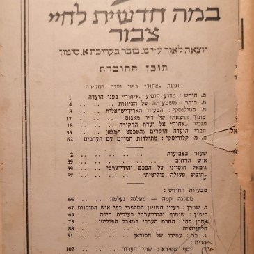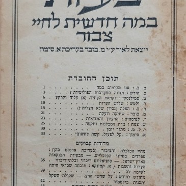 במה חדשית לחיי צבור | יוצאת לאור ע"י מ. בובר סעריכת א. סימון | שנה א', חוברת א' | ירושלים, ניסן תש"ד | מרץ 1944