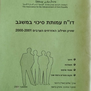 שוויון ושילוב האזרחים הערבים 2000-2001 חינוך | תשתיות | שטחי שיפוט | מקום מגורים ורמת שכר עורך: שלום (שולי) דיכטר | תחקיר וכתיבה: איציק גרשוני | הפקה והבאה לדפוס: מיכל בליקוף | עריכה לשונית : יצהר ורדי | תרגום לערבית: חסן תרגומים | תרגום לאנגלית דבורה רייך | ספטמבר 2001 חוברת זו מופיעה גם בעברית … המשך דו"ח עמותת סיכוי במשגב